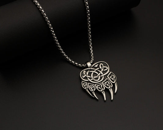 Stainless Steel Box Chain Bear Paw Necklace Gift For Him