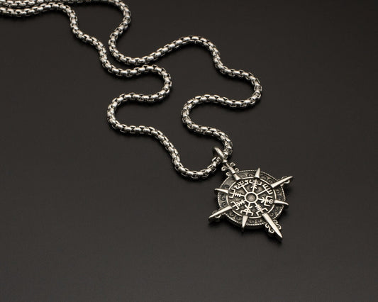 Stainless Steel Vegvisir Viking Compass Necklace