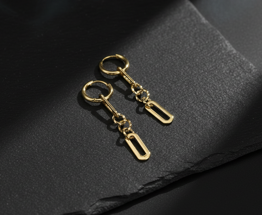 These gold plated chain link hoops are crafted from stainless steel for everyday wear that won't tarnish. Lightweight, eye-catching, and ready to adorn any outfit with a dash of golden charm.