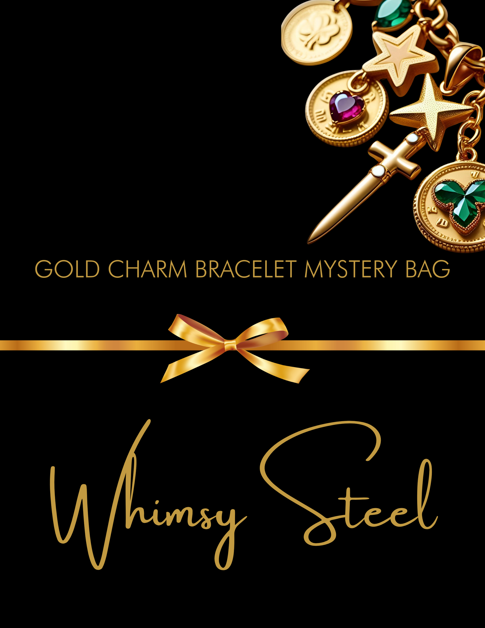 Unwrap a little mystery and a lot of sparkle! Each mystery bag contains one high-quality 18K gold plated stainless steel bracelet paired with five unique charms chosen at random — no two sets are exactly alike! Assembled and ready to dazzle!