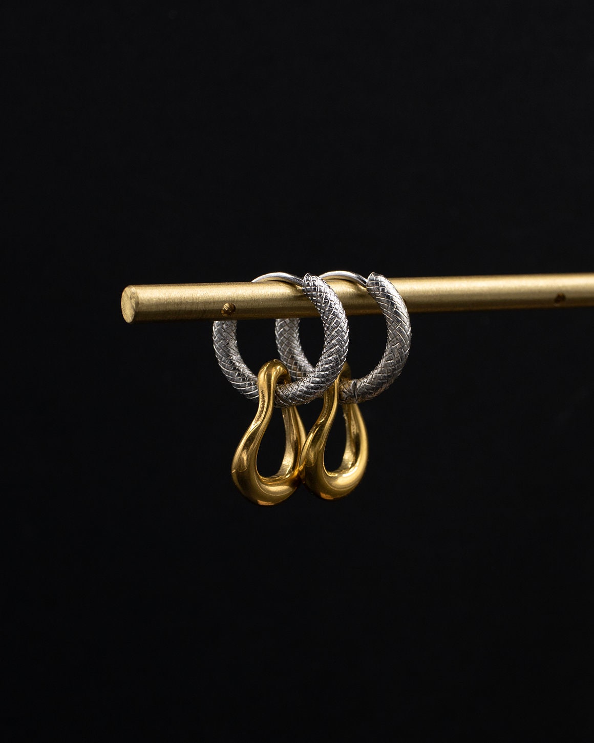 Add some fun and flair to your look with these mixed metal earring hoops! Featuring a playful mix of silver and gold, with unique organic drop charms, these earrings will be perfect for your everyday wear.