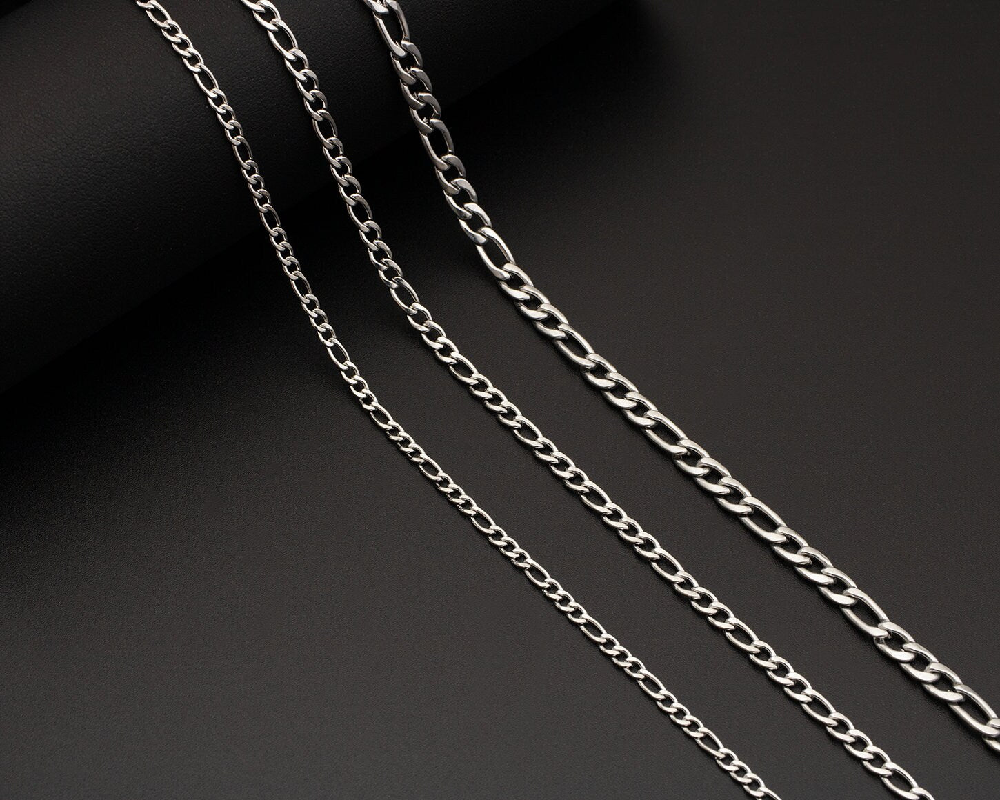 At Whimsy Steel, we understand that one size does not fit all. Our Figaro chain necklace is available in a range of sizes to accommodate your unique preferences. From dainty and subtle to bold and statement-making, choose the width and length that complements your individual style. Our range of sizes guarantees a perfect fit, ensuring you showcase your fashion with confidence.